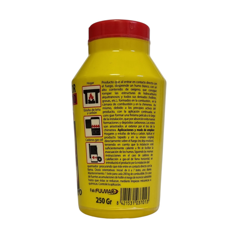 Ideal para eliminar el hollín, resinas e incrustaciones de cualquier tipo producidas por la combustión de la estufa, chimenea o caldera de leña. Caja: 24 uds.