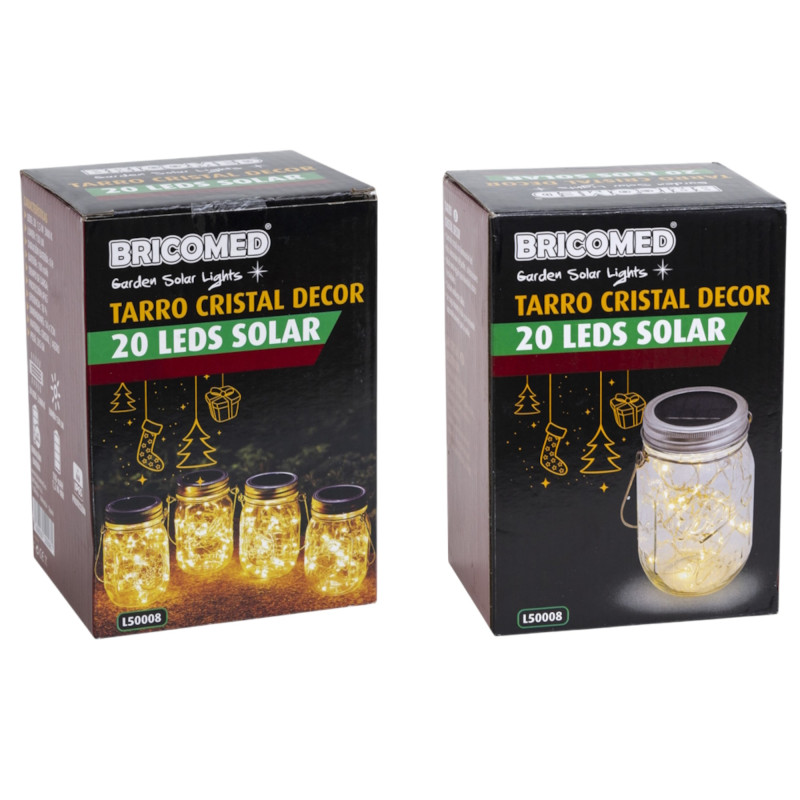 Tarro de cristal con iluminación led, para decoración del jardín, celebraciones nupciales, o como regalo para Navidad u otras festividades. Crear un ambiente cálido. Se carga durante el día y se enciende automáticamente por la noche. Caja: 12 uds