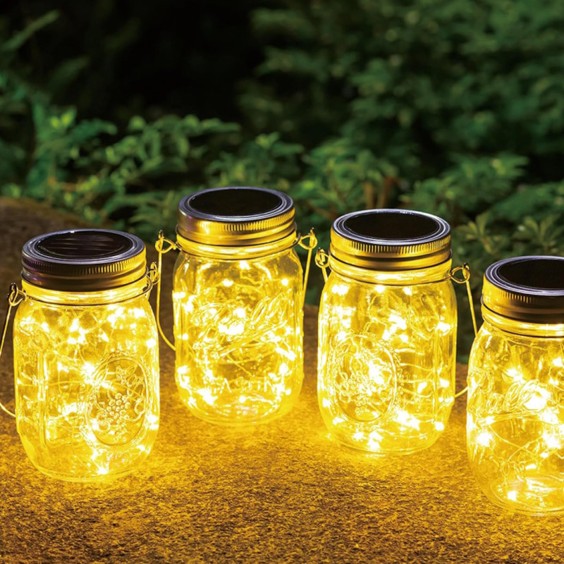 Tarro de cristal con iluminación led, para decoración del jardín, celebraciones nupciales, o como regalo para Navidad u otras festividades. Crear un ambiente cálido. Se carga durante el día y se enciende automáticamente por la noche.