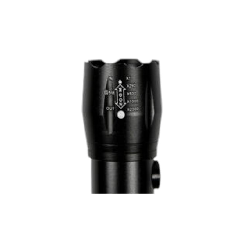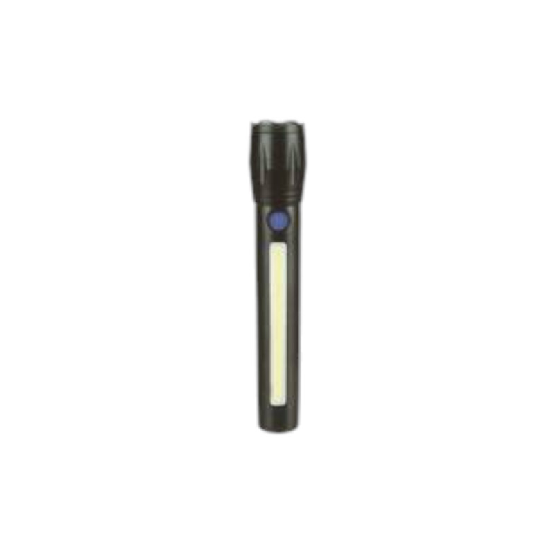 Material: aluminio. Modos de luz: Foco delantero c/zoom para ver a largas distancias. Led lateral que sirve como lámpara en habitaciones, tiendas de campaña, etc.