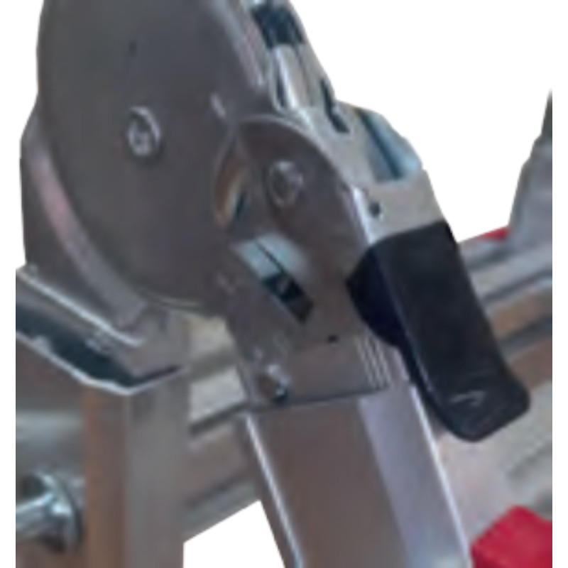 Todo aluminio. Incluye barra estabilizadora. Visagras en acero automáticas y con dispositivo de seguridad de bloqueo. Peldaño de sección interna reforzado con nervios. Cómodo y rápido cambio de posición. Gancho galvanizado con tope. Ligera y muy resistente.
