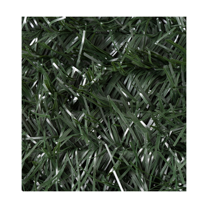 Características: PVC 100% virgen. 110 varillas unidas por alambre plastificado. Diámetro del alambre: 1,2 mm. Grosor hojas: 2 mm (bicolor, 2 tonos de verde claro y oscuro). Ocultación: 95%. Tratamiento anti UV. Presentación en bolsa con cremallera y asas.