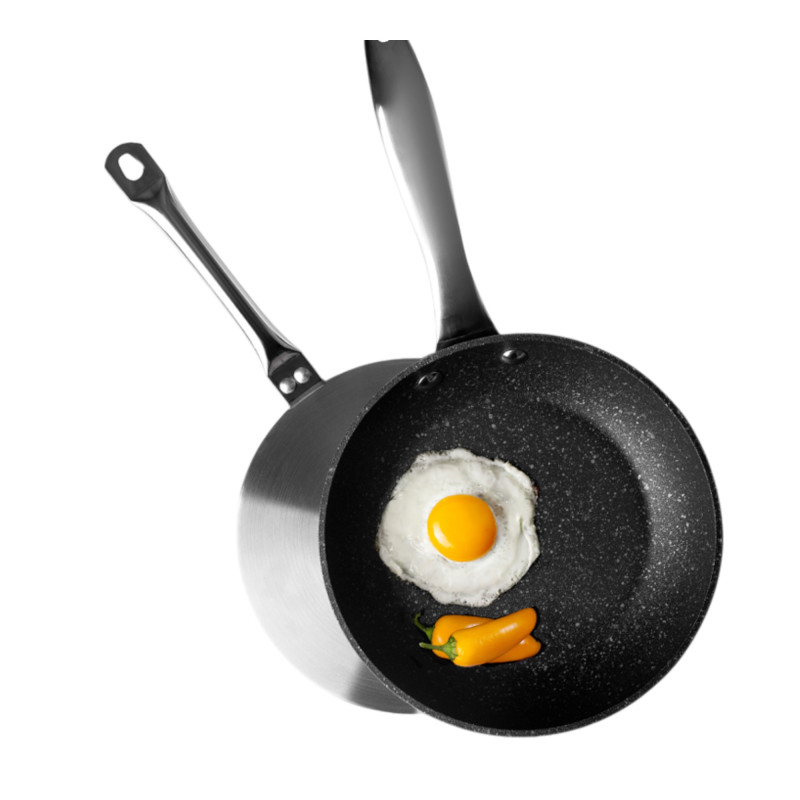 Fabricada en aluminio para inducción con mago de baquelita. Es especial inducción y apta para todas las cocinas. Está recubierta con 2 capas de antiadherente de alta calidad, libre de PFAS.